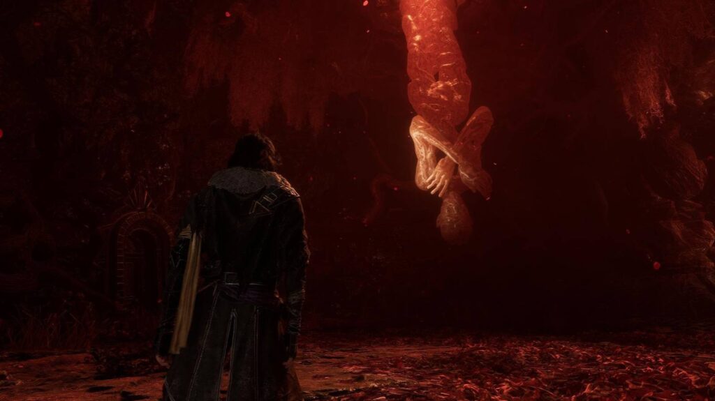 One particular moment that really made me appreciate the art style was in Resinveil Grove, where you meet the Lady of Sap in a cave painted in deep crimson (probably quite the sight on an OLED panel, if only I had one…)