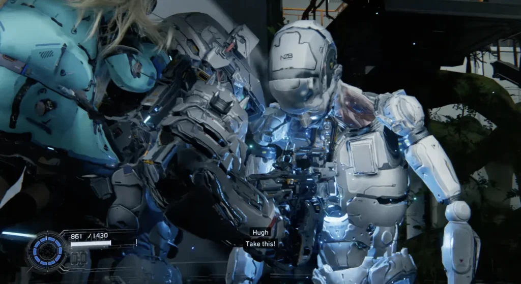 You play as Hugh Williams, a sarcastic investigator in a chunky pressurised suit with a jetpack, sent to The Cradle as part of a recovery mission. Early on, he teams up with Diana, a young android companion with platinum hair and bright blue-green eyes who rides around on Hugh’s shoulder. Diana is curious, innocent, and endlessly charming — essentially the heart of the game.